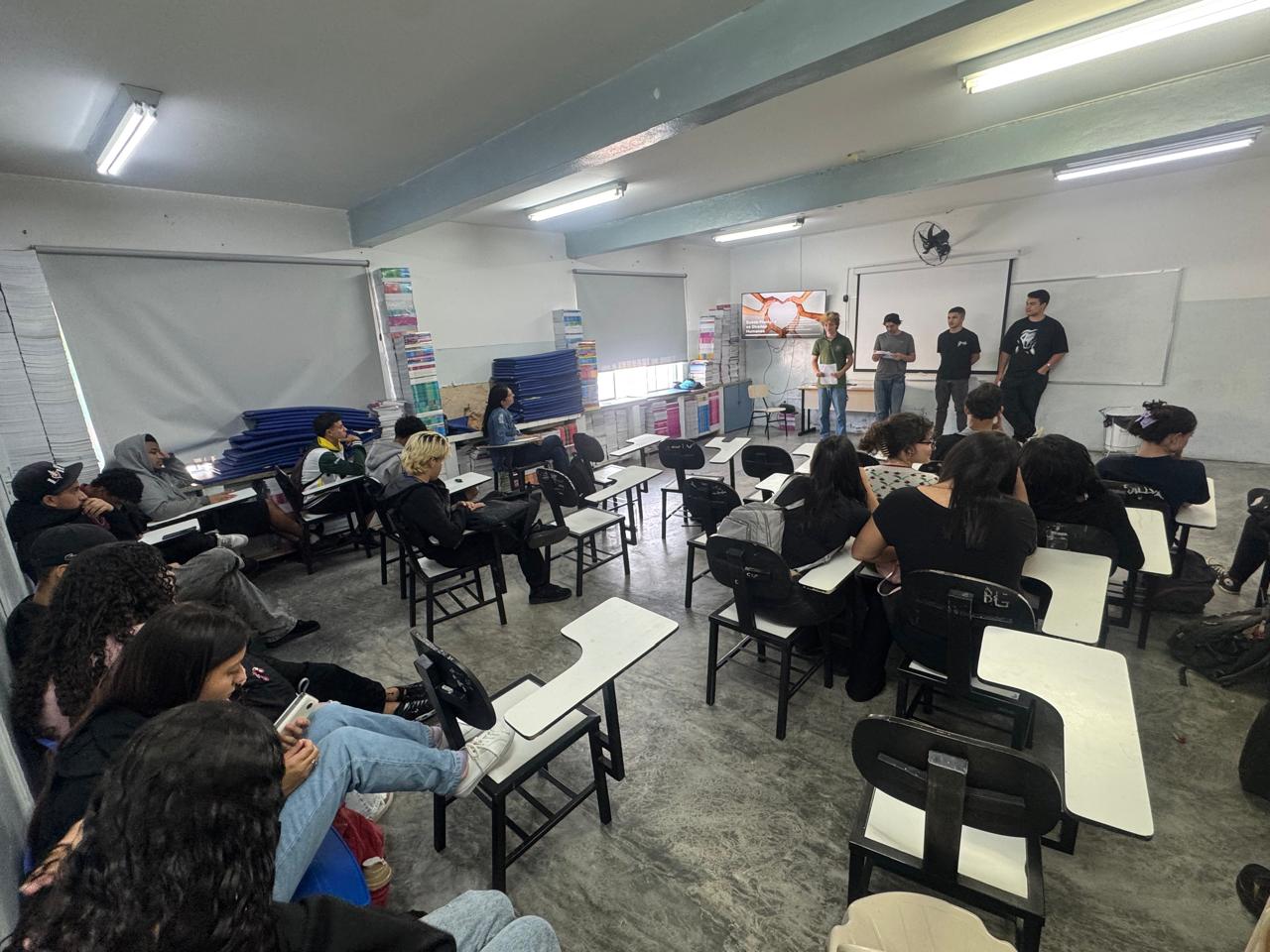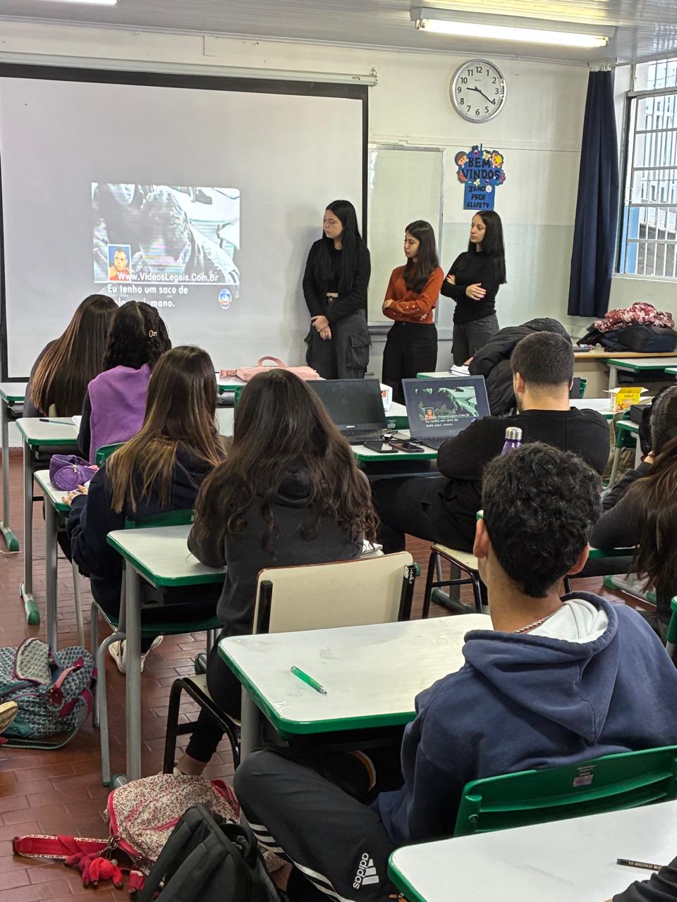 Durante as atividades, nossos estudantes dialogaram com alunos sobre questões como igualdade, combate à discriminação, cidadania e dignidade da pessoa humana, fortalecendo a consciência social e incentivando práticas que respeitem os direitos fundamentais.