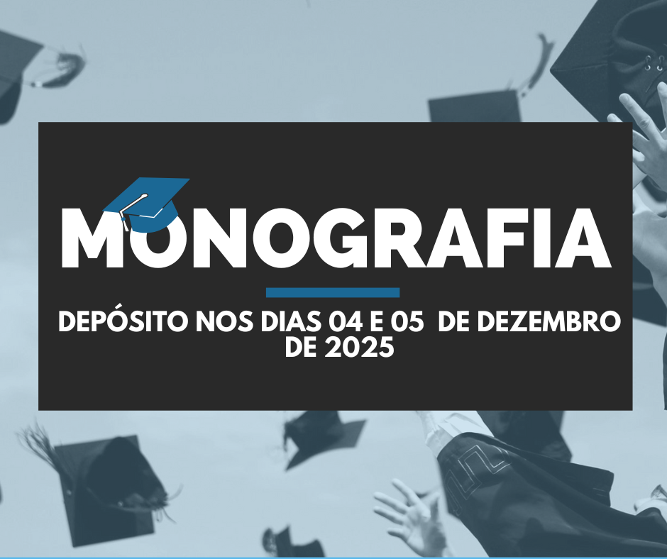3. O arquivo do trabalho em formato PDF, contendo, APENAS O TEXTO DA MONOGRAFIA, SEM A DECLARAÇÃO DE AUTENTICIDADE, deverá ser postado no site da biblioteca nos dias referentes ao deposito, dias 04 e 05 de dezembro de 2025 até às 23h59min horas.